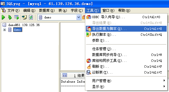 3.備份數據庫:選擇工具菜單中的“導出數據為腳本”,