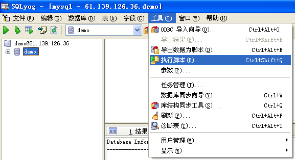 2.還原數據庫: 選擇工具菜單中的“執行腳本”。