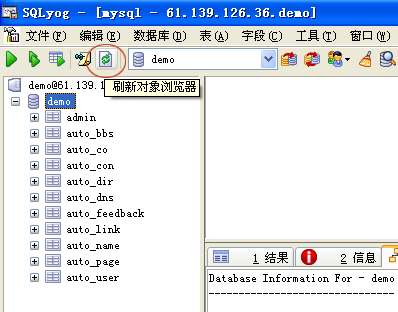 點擊如下圖所示的刷新按鈕,可以刷新數據庫信息。