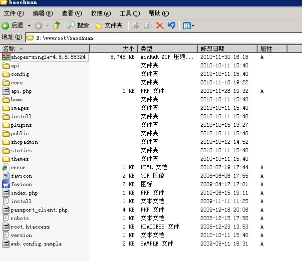 三、下載shopex程序安裝。遠程登陸服務器直接訪問http://www.shopex.cn/48release/選擇線路下載。解壓到對應主機目錄如下圖: