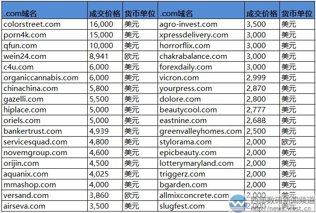 海外終端11萬元收購“色彩街”域名! 保險公司一連拿下多個國別域名?三五互聯(lián)(35.com)4月19日消息,國外sedo平臺剛剛發(fā)布了最新一期的交易榜。大體來看,本期表現(xiàn)平平,僅有三個.com域名成交價在五位數(shù),同時數(shù)量上也較下周有所減少。其中,本周最貴的域名為colorstreet.com,成交價為16,000美元,約合人民幣11萬元。