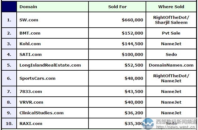 DN榜:極品域名sw.com以455萬元霸氣奪冠!多個短字符域名表現搶眼三五互聯(35.com)5月11日消息,本期的DN交易榜(5.1-5.7)上,短字符域名表現搶眼,排名前10的域名中,7成域名皆是四字符以下的域名。其中,極品兩聲母域名sw.com以660,000美元的價格榮登榜首,約合人民幣455萬元。 域名sw.com注冊于1994年,距今已有23年歷史了。作為兩聲母域名,sw.com代表的含義非常豐富,有“商務、生物、上網、食物、絲襪”等含義,在英文里可以是“西南”(southwest)、視頻教程Solidworks等多個組合詞的縮寫,可以應用的空間非常廣泛,市場價值也相當不菲。據了解,域名sw.com是由知名經紀人Sharjil Saleem中介交易的,三月份他還經手了域名asset.com(資產)。 排名第二的是三字母域名bmt.com,成交價為152,000美元,約合人民幣105萬元。這個域名由海外信托公司Bryn Mawr Trust收購,官網域名為bmtc.com。雖然目前bmt.com尚未啟用,但相比于bmtc.com,bmt.com更加簡潔易記,便于輸寫,而且與品牌形象、官網logo等更加契合。 緊隨其后的kohl.com,以144,500美元成交,約合人民幣99.5萬元。該域名注冊于1996年6月,距今已有21年歷史了,在英文里是人名“科爾”的意思。目前對應有美國著名的專業百貨公司——科爾士百貨公司 (Kohl’s) ,官網域名為kohls.com。 同樣以六位數美元成交的還有cvcv型域名sati.com,成交價為100,000美元,約合人民幣70萬元。據悉,該域名此前由一家生活服務類軟件公司持有,三月底域名sati.com還可以訪問,不過目前由于交易已經完成,網站也以關閉。另一枚cvcv型域名rati.com也以35,300美元的成交價躋身榜單前10。 除此以外,三個組合域名也頗具看點,其中字符較長的longislandrealestate.com成交價為52,500美元,人民幣大概是36萬元。這個域名雖然較長,但“長島地產”的含義非常清晰,用來搭建地方性房地產平臺最合適不過的了。另外,sportscars.com(跑車)、clinicalstudies.com(臨床研究)均超3萬美元成交。 本文轉載自新聞資訊,原文鏈接:DN榜:極品域名sw.com以455萬元霸氣奪冠!多個短字符域名表現搶眼