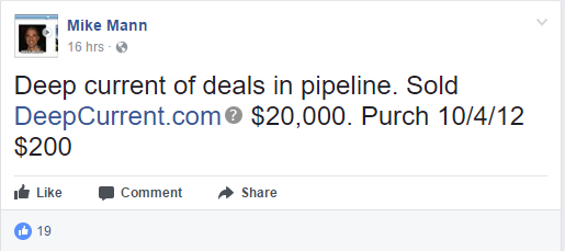 大佬Mike Mann半個月域名交易超10萬美元!成本最低僅8美元!三五互聯(35.com)6月16日消息,說起大佬Mike Mann,米友們應該并不陌生了:域名出手頻率高,成本低,交易價格卻常常讓人瞠目結舌。近日外媒整理發現,Mike Mann近半個月域名交易總額已超10萬美元, 其中,有的域名成本竟然僅為8美元。 域名DeepCurrent.com注冊于2004年9月,直譯為“深層流”,適合搭建網絡服務類平臺。該域名成交價為20,000美元,約合人民幣13.6萬元。成本為200美元。 域名ourtree.com成交價為17,000美元,直譯為“我們的樹”。該域名由Mike Mann 于2009年僅花85美元收購。 組合域名wellofthesoul.com由Mike Mann公司于2012年5月注冊,成本僅為8美元。該域名直譯為“靈魂之井”,適合搭建礦泉水等飲料品牌。小編搜索發現,該域名對應一首流行歌曲《The well of the soul》。 另一個組合域名sunchat.com則注冊于2003年,直譯為“陽光聊天”,2012年8月由Mike Mann花150美元收購而來,很適合搭建聊天類軟件以及社交論壇等。此前迪拜就有一款名為sun chat社交APP與之對應。 另外,域名Centralisation.com和Dalwhinnie.com則分別以14,888美元和20,000美元成交,成本分別為200和500美元。其中,Centralisation.com是“集中”的意思;Dalwhinnie.com則對應“達爾維尼”洋酒。 本文轉載自新聞資訊,原文鏈接:大佬Mike Mann半個月域名交易超10萬美元!成本最低僅8美元!