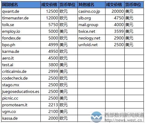 國別域名方面,兩個德國域名表現搶眼,域名qwant.de和timemaster.de分別以12500歐元和12000歐元結拍。其中,qwant.de對應有法國搜索引擎,官網域名為qwant.com。而timemaster.de則有“時間主節點,時間主控器”之意思,對應有美國科幻片Timemaster,另外一款電穿孔美容儀也與之對應。 此外,“賭場”域名casino.co.jp以20000美元結拍,約合人民幣14萬元。“菠菜”類域名在米市上比較走俏,價格也居高不下。像此前交易的新頂級域名casino.online就拍了139萬元,另外bitcoin.casino、Dreamcasino.com等成交價也都不低。 本文轉載自新聞資訊,原文鏈接:“益民寶”域名YMB.COM以24萬元結拍!“好中國”登上Sedo榜