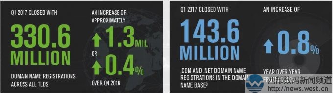 威瑞信發布2017年一季度域名行業簡報三五互聯(35.com)7月19日消息,域名運營注冊局威瑞信今天對外發布2017年第一季度域名注冊量簡報,報告稱今年一季度所有國際頂級域名注冊總量達3.306億個,其中截至到2017年3月31日,新增注冊量為130萬個,同比增長3.7%,環比增長0.4%。
