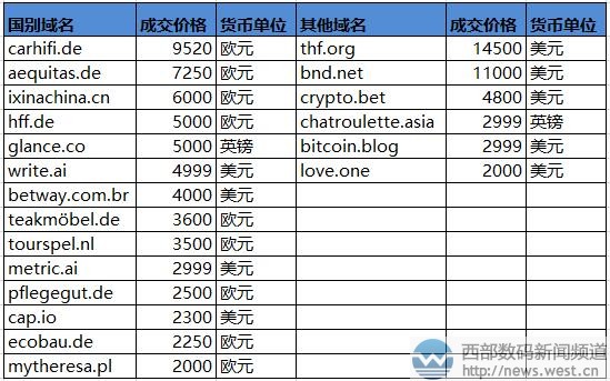 國別域名方面,本期多個德國域名成交。其中,價格最高的域名carhifi.de以9520歐元結(jié)拍,約合人民幣7.5萬元。主體“hifi” 常用來表示音響設(shè)備的“高保真度”,可作為車載音響品牌的官方域名。除此以外,域名aequitas.de以7250歐元結(jié)拍,hff.de以5000歐元結(jié)拍,另外teakmobel.de、ecobau.de等域名也榜上有名。 其他域名方面,三字母域名thf.org以14,500美元結(jié)拍,約合人民幣10萬元,代表有“提貨費、退貨費、通話費”等諸多含義,可以挖掘的空間較大。此外,新頂級域名crypto.bet以4800美元結(jié)拍,該域名有“加密貨幣打賭”之意;另外一枚“比特幣博客”域名bitcoin.blog以2999美元結(jié)拍,love.one以2000美元上榜。 本文轉(zhuǎn)載自新聞資訊,原文鏈接:語言學習平臺Mondly相關(guān)域名17萬元結(jié)拍!比特幣新頂級再上sedo榜