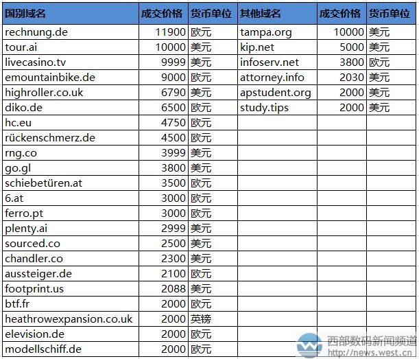 國(guó)別域名方面,德國(guó)域名再次名列前茅。繼上周rechnung24.de以18,000歐元奪得第一后,本期rechnung.de又以11,900歐元成交,約合人民幣9.3萬元。“rechnung”有“賬單”的意思,適合搭建財(cái)務(wù)票務(wù)類網(wǎng)站。 除了.de域名,安圭拉國(guó)家域名tour.ai也以10,000美元成交,人民幣大概是6.6萬元。“tour”是“旅游、觀光”的意思,在全球都是非常通用的詞語,所以域名tour.ai很適合搭建旅游平臺(tái)。 其他域名方面,tampa.org成交價(jià)為10000美元,對(duì)應(yīng)有美國(guó)佛羅里達(dá)州西部港市——坦帕,適合搭建地方政務(wù)以及門戶類網(wǎng)站,另外旅游、招聘等生活類平臺(tái)也可使用該域名。 本文轉(zhuǎn)載自新聞資訊,原文鏈接:Sedo榜:終端近10萬元買下“突角”域名!兩枚國(guó)別域名表現(xiàn)搶眼