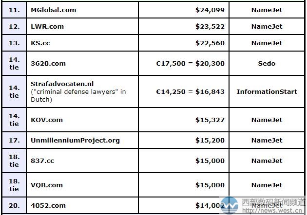 DN榜:“媽媽”域名中六位數奪冠!三字母域名占據半壁江山三五互聯(35.com)11月2日消息,據最新一期的DN榜(10.30-11.5)顯示,超過一半以上的域名均為三字母,其風頭無可匹敵。不過,冠軍寶座卻被英文域名Mommy.com以100,000美元的價格摘得,約合人民幣66萬元。