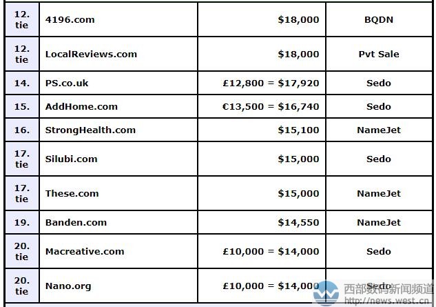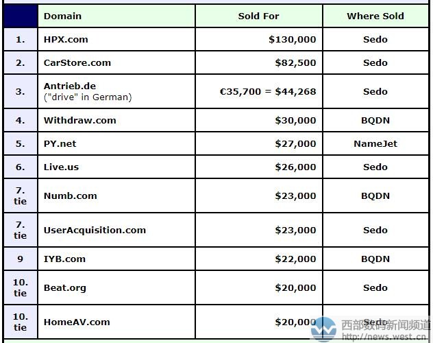 DN榜:三字母域名HPX.COM奪冠! “汽車商店”中六位成交2月8日消息,上周由于全球域名大會(huì)NamesCon在拉斯維加斯召開,DN榜未公布交易情況。本期的DN榜涵蓋了1月22日–2月4日期間成交價(jià)最高的域名,其中三聲母域名HPX.COM以130,000美元排在第一,約合人民幣81萬元。