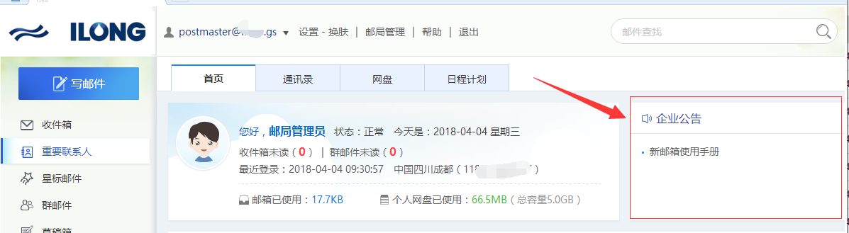 有的時候我們需要添加企業公告,告知企業內所有用戶一些需要及時了解的信息,可以添加企業公告,如下圖: