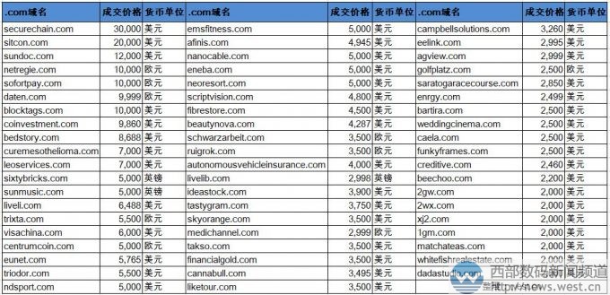除此以外,.com域名方面成交價在五位數美元以上的還有netregie.com(潛在終端有IT公司Netregie)、softotpay.com(軟支付)、daten.com、blocktags.com(塊標記符)。