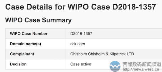 身價(jià)中六位數(shù)!國人持有的三聲母域名CCK.COM卷入仲裁!6月20日消息,據(jù)外媒domaininvesting報(bào)道,近日又一枚三聲母域名CCK.COM卷入了爭議域名仲裁。案件號為D2018-1357。