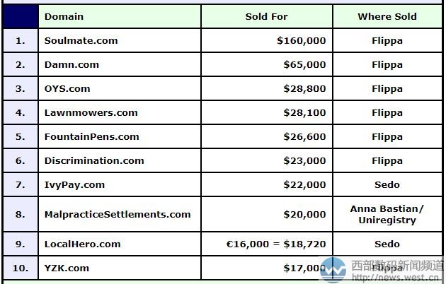 來(lái)源三五互聯(lián)新聞資訊,原文鏈接:英文域名“靈魂伴侶”以108萬(wàn)元高居DN榜首!