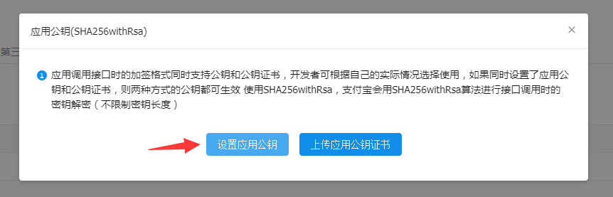 點擊查看支付寶公鑰,可以查看并復制支付寶公鑰。支付寶公鑰也用于填寫到平臺——支付寶小程序配置中。