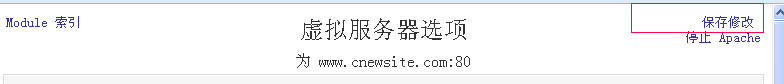 不管是添加虛擬主機還是新增綁定域名,保存后并不會立即生效,必須點擊右上方的"保存修改"后方可生效(如下圖)