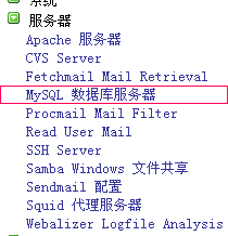 點擊Webmin的"服務器"-"MySQL數據庫服務器"(如下圖)