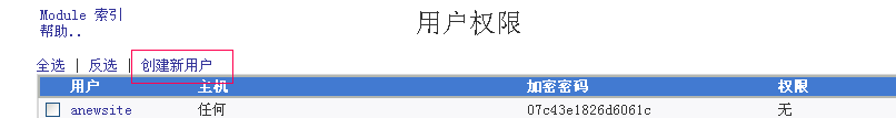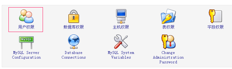 在"Mysql數據庫服務器"中點擊"用戶權限"(如下圖)