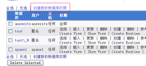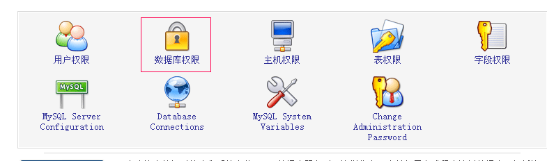 在"Mysql數據庫服務器"中點擊"數據庫權限"(如下圖)