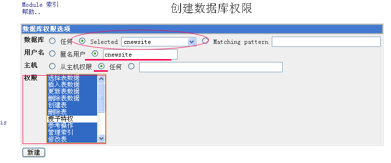 所以若要使用Webmin添加一個MySql數據庫,需要經過三個步驟.