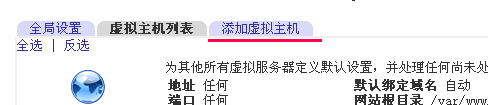 點擊后系統會列出現有的所有虛擬主機,此時我們需要點擊"添加虛擬主機"(如下圖)