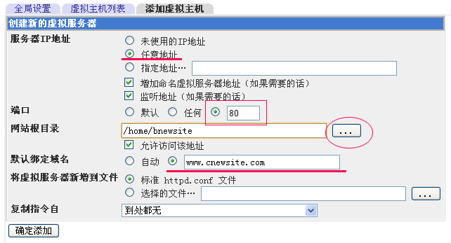 "默認綁定域名"填寫為您的主域名,若有多個域名,則剩下的域名需要添加好虛擬主機后再行設置.