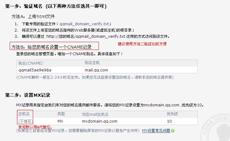 接下來看下QQ郵局開通域名郵局時的設置要求: