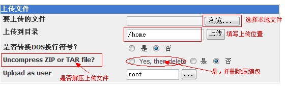 3、選擇您需要上傳的文件,若是壓縮包,可以選擇解壓功能。因為webmin采用root賬戶管理,所以默認顯示上傳用戶是root。 如圖: 上傳后您可以在文件夾看到上傳的文件,若是壓縮包,上傳后可以直接看到解壓后的文件,如果位置不對可以用剪切功能調(diào)整 位置。