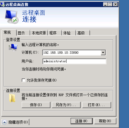 組建以后,登錄B主機中-開始-運行輸入mstsc-輸入A主機的遠程登錄信息: