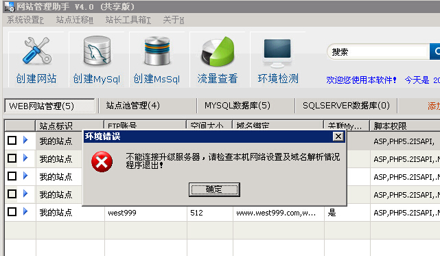 網站管理助手打開報錯檢查一.打開助手軟件出現以下錯誤可能造成的原因有: 1.服務器時間差距太大,尤其注意服務器時間中的日期 4.檢查服務器磁盤是否已滿,請清理或升級擴容