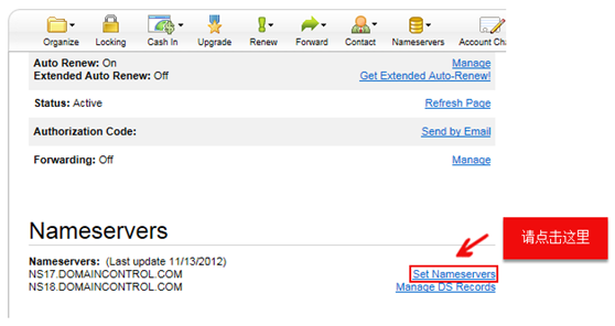 4、點擊后在新頁面中找到Nameservers部分,點擊【Set Nameservers】。